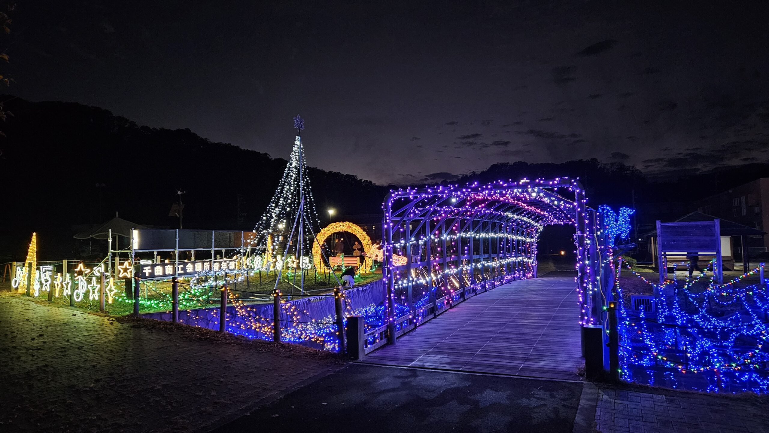 千曲市屋代のサンパワーふれあい公園(科野の里ふれあい公園)では、 毎年恒例のイルミネーション装飾を展示中です。 高さ6メートルのLEDツリーをはじめ、橋にかかるアーチ型の装飾や ハート形のフォトスポットなど、色鮮やかな光 […]